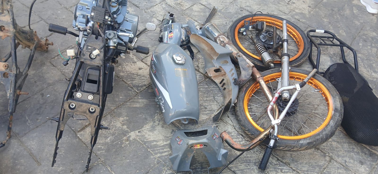 Asimismo, en el lugar fueron ocupadas varias evidencias, entre ellas tres chasis marca CG de color negro con la numeración limada, un recipiente plástico con piezas de distintas motocicletas y cuatro teléfonos celulares de diferentes marcas.