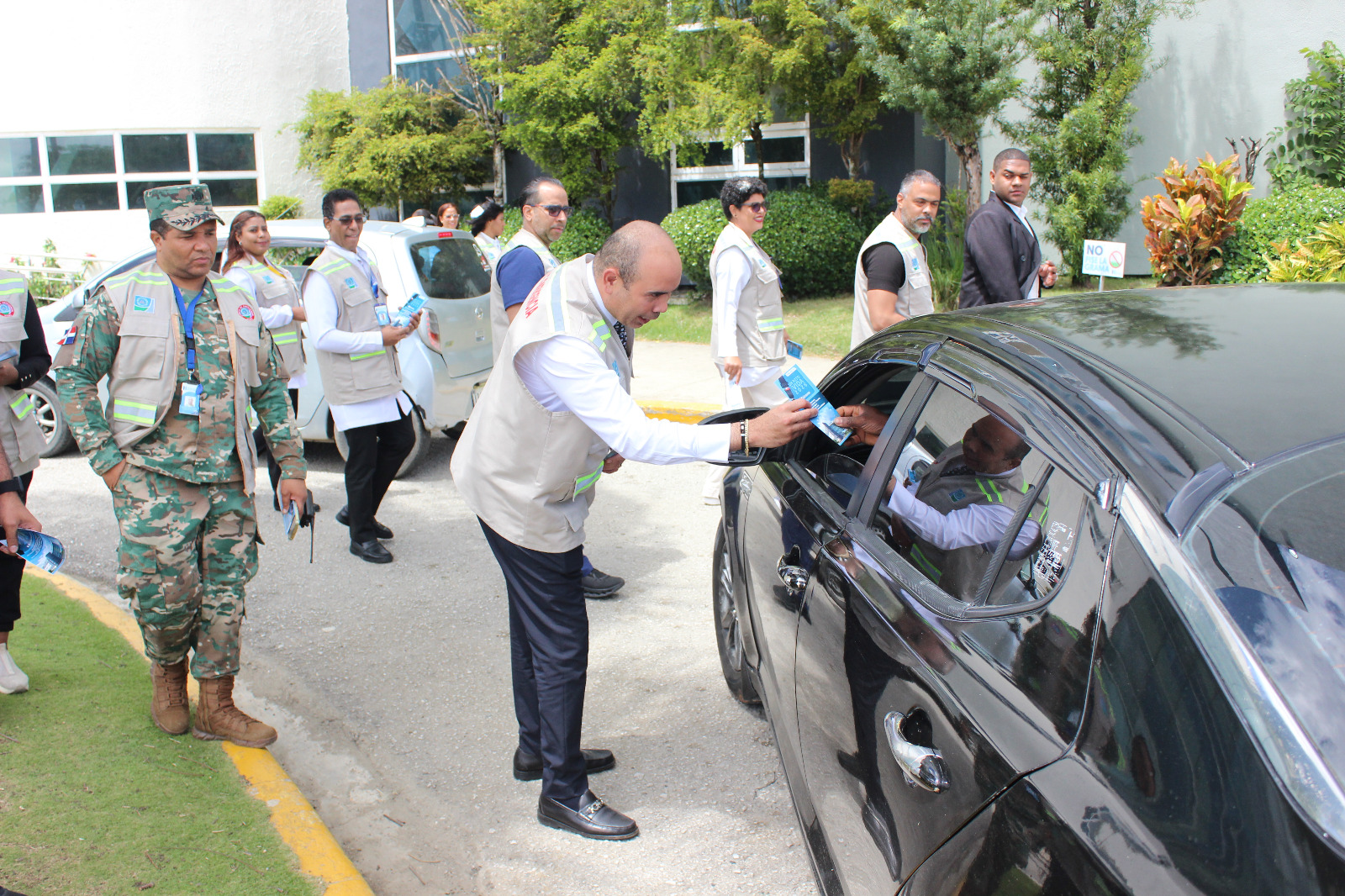 El director, Víctor Rosario, encabezó la entrega de brochure informativos a transeúntes, junto a un grupo de voluntarios que se sumaron a esta jornada de orientación ciudadana.